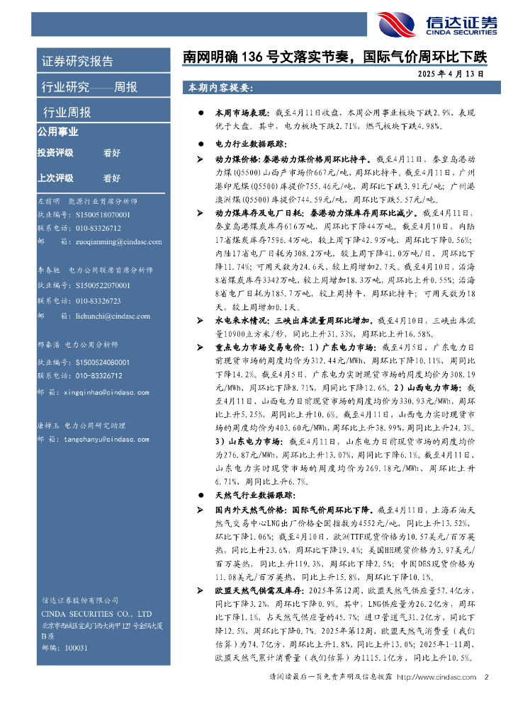 信达证券:公用事业—电力天然气周报:南网明确136号文落实节奏,国际气价周环比下跌.pdf