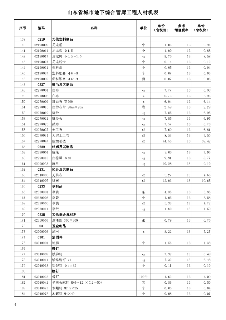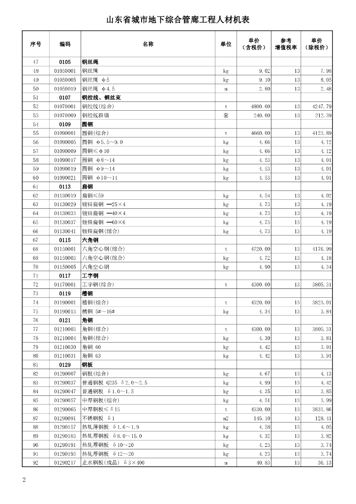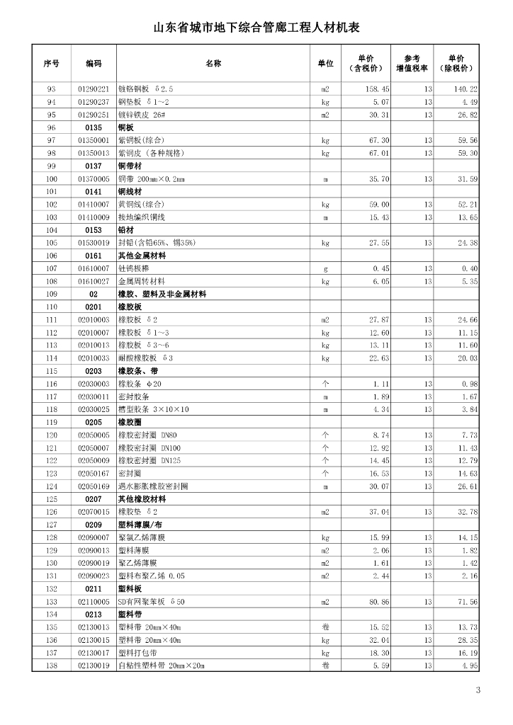 山东省工程建设标准定额站:山东省城市地下综合管廊工程人材机表(2019).pdf