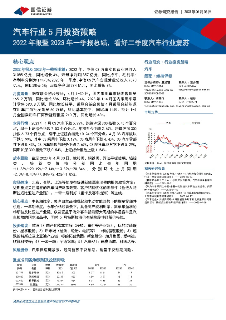 国信证券:汽车行业5月投资策略:2022年报暨2023年一季报总结,看好二季度汽车行业复苏.pdf