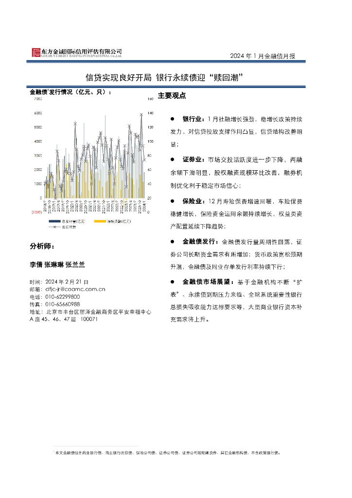 东方金诚:2024年1月金融债月报-信贷实现良好开局 银行永续债迎“赎回潮”.pdf