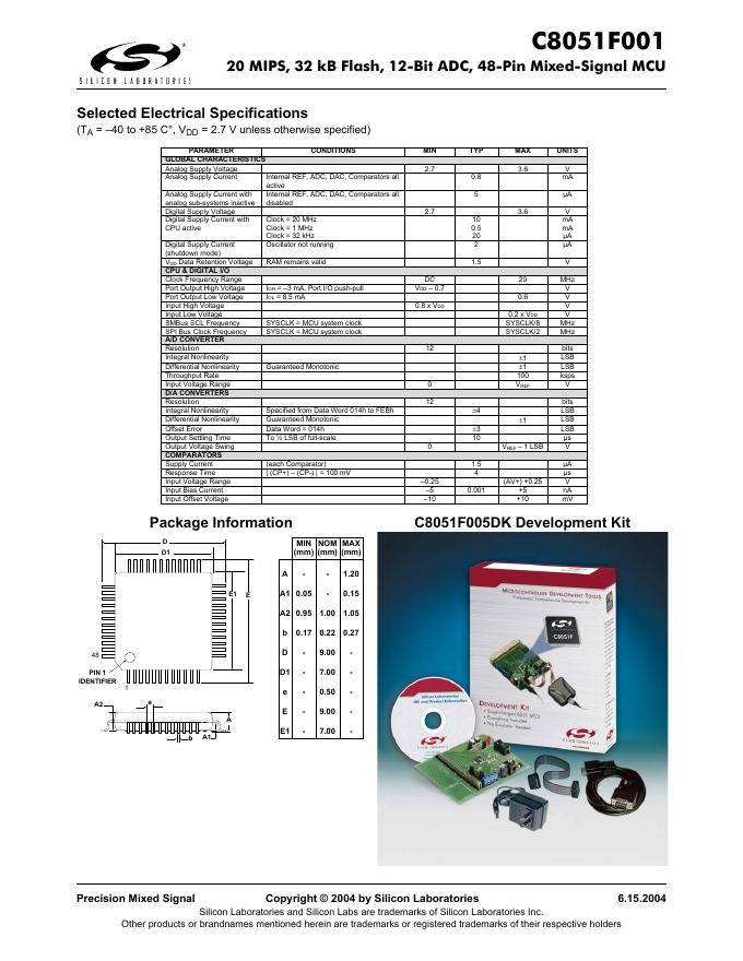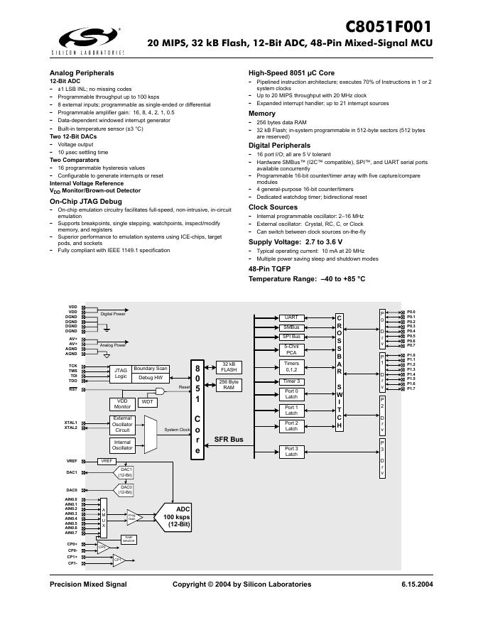SILICON LABORATORIES C8051F001 数据手册.pdf