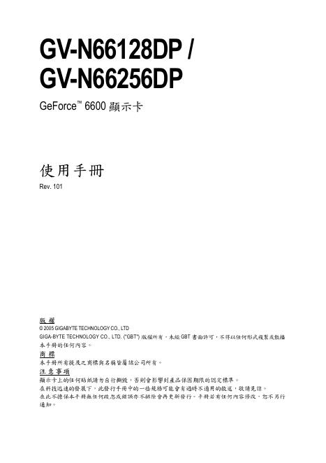 GV-N66128DP / GV-N66256DP GeForce 6600 显示卡 使用手册.pdf