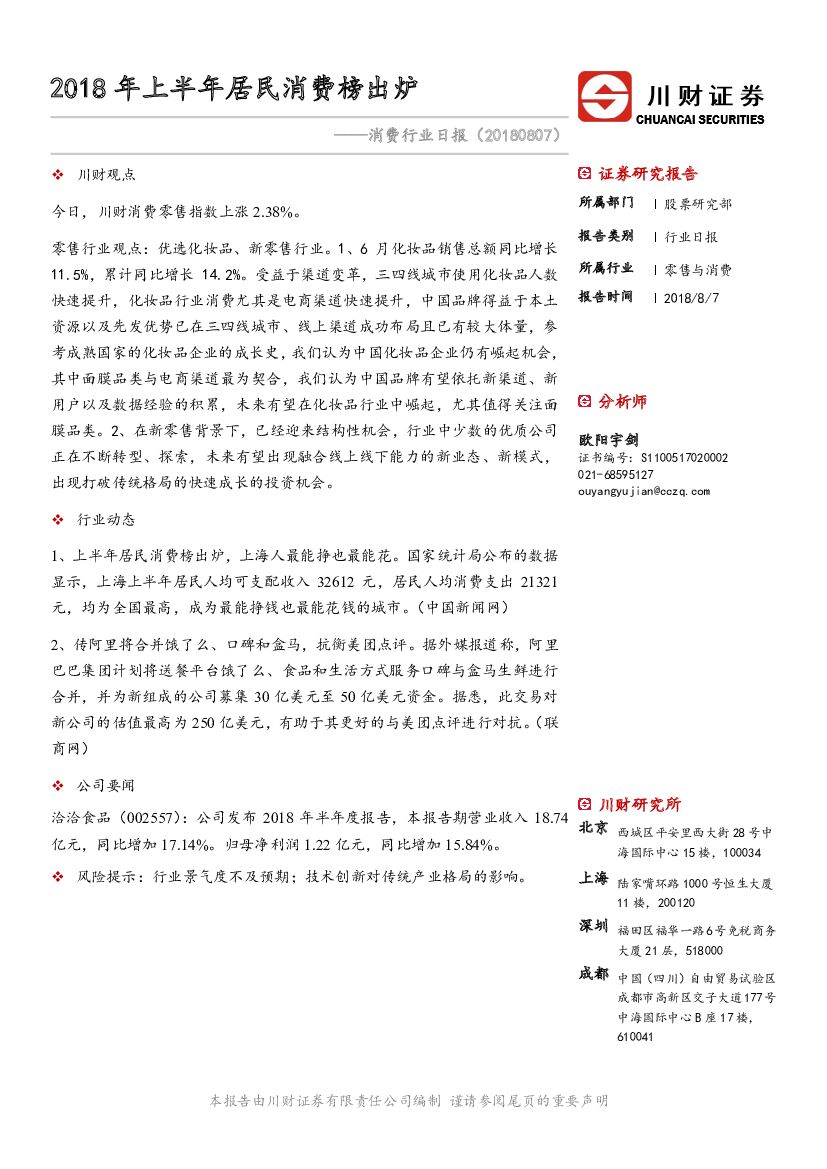 川财证券:消费行业日报:2018年上半年居民消费榜出炉.pdf