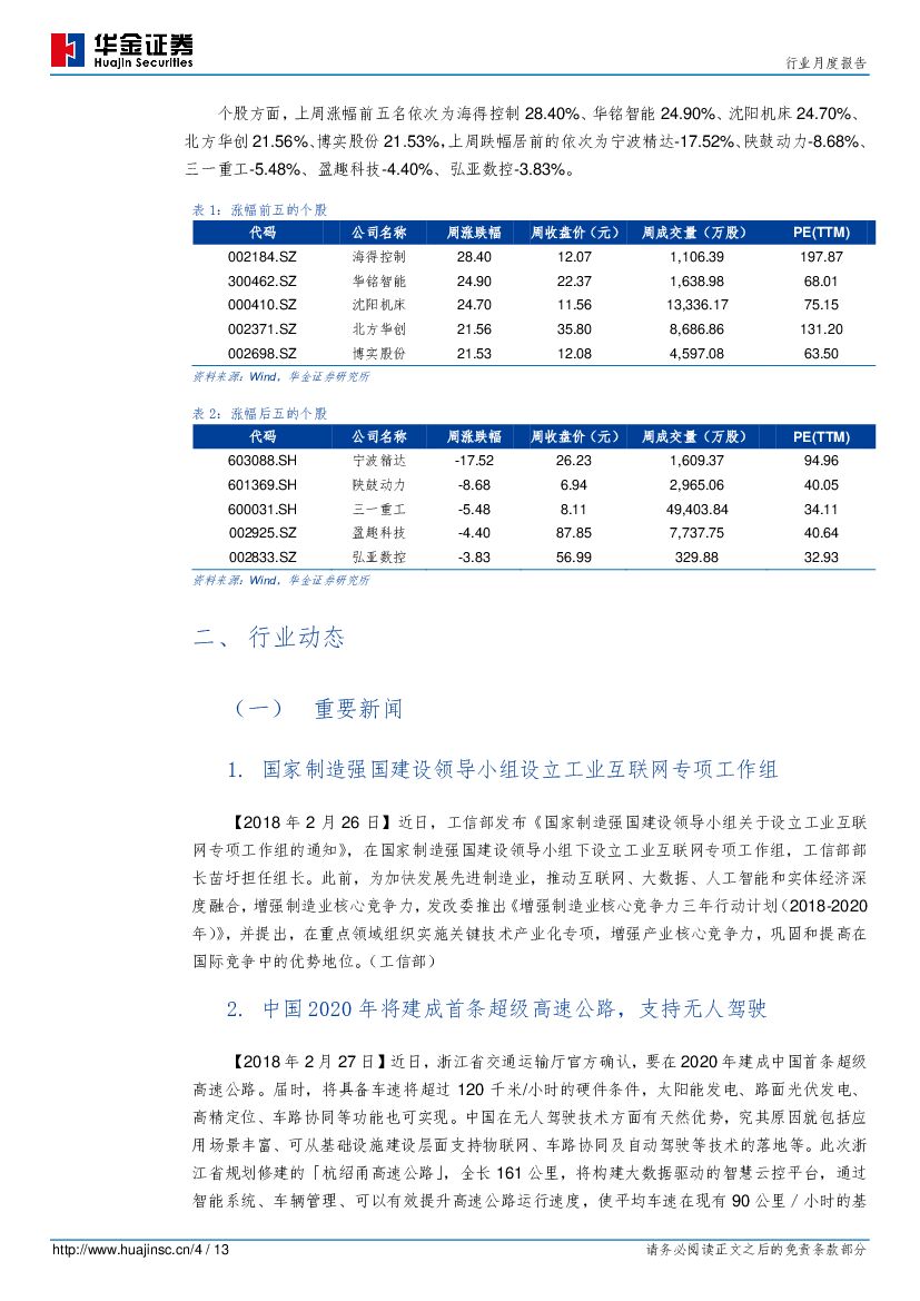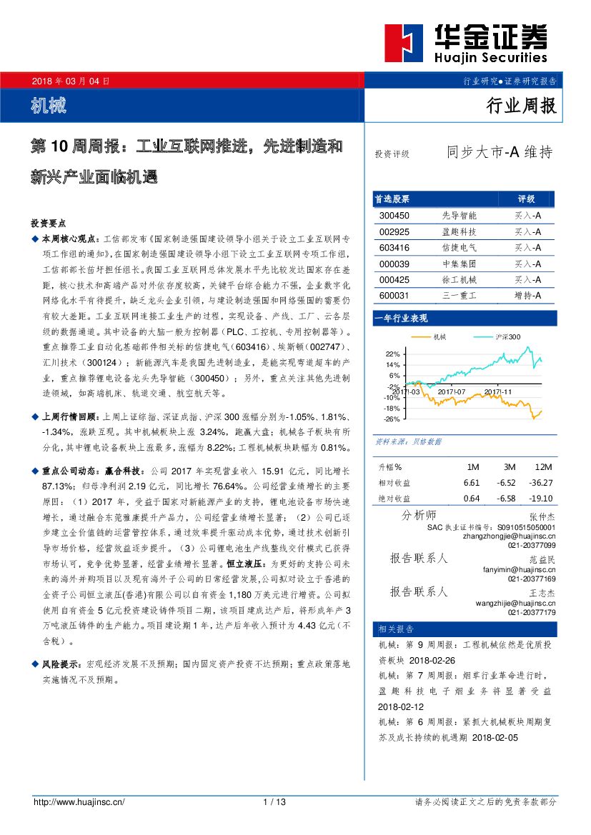 华金证券:机械行业第10周周报:工业互联网推进,先进制造和新兴产业面临机遇.pdf