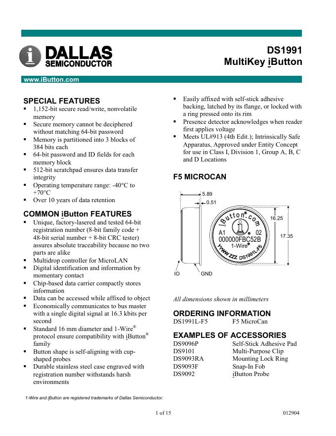DALLAS DS1991 MultiKey iButton 数据手册.pdf