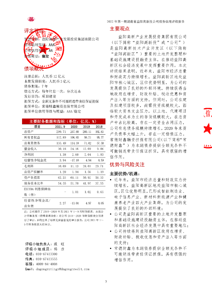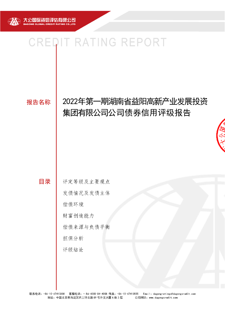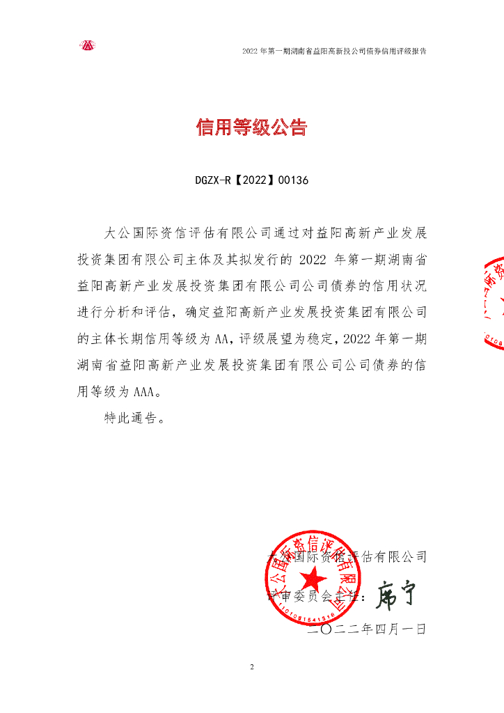 大公:2022年第一期湖南省益阳高新产业发展投资集团有限公司公司债券信用评级报告.pdf