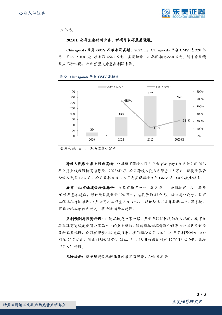 东吴证券:小商品城(600415)-2023年半年报点评:归母净利润同增63.5%,新业务多点开花.pdf