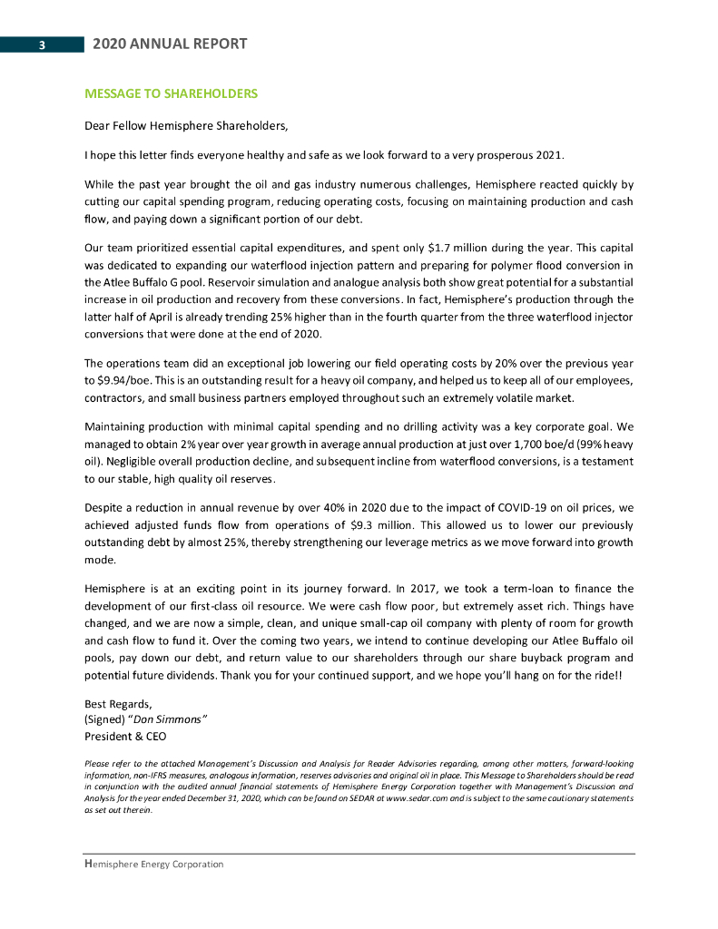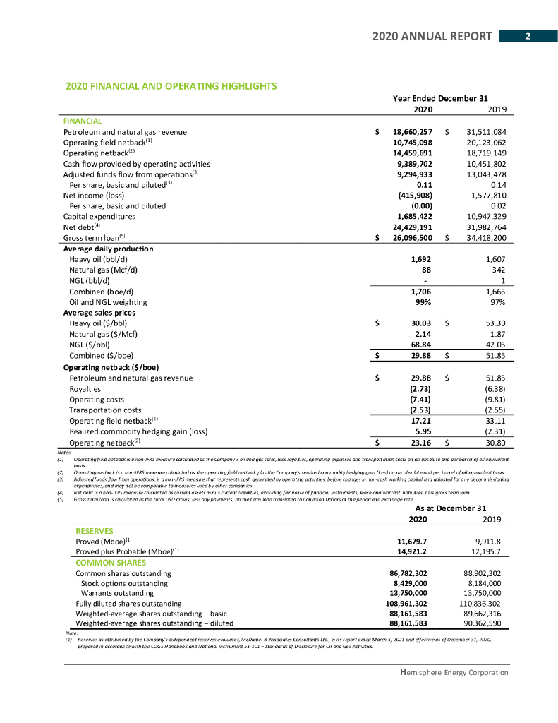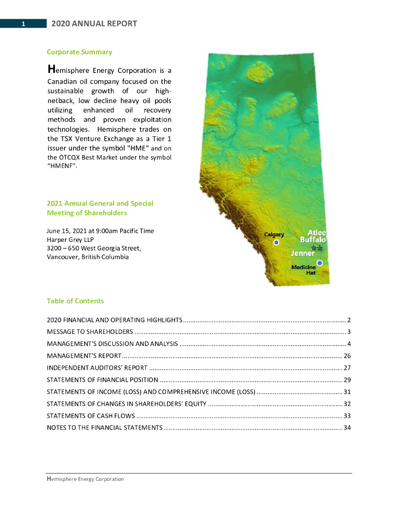 Hemisphere Energy Corporation(HME)2020财年年度报告(英文版).pdf