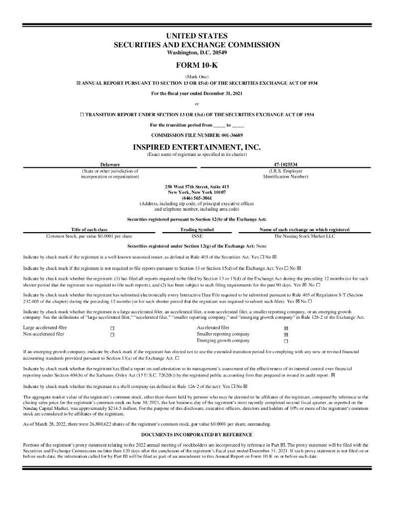 Inspired Entertainment, Inc.(INSE)2021财年年度报告(英文版).pdf