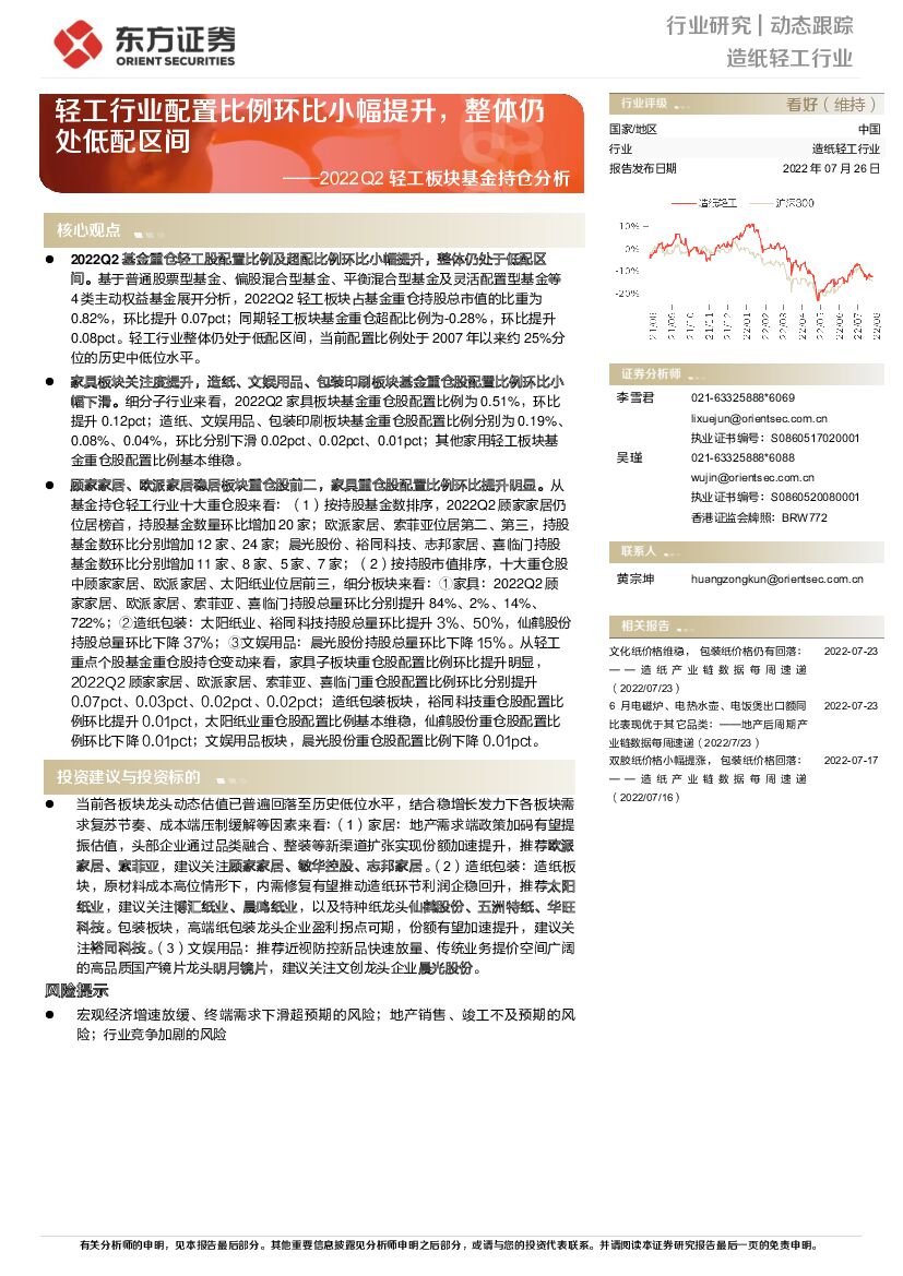 东方证券:2022Q2轻工板块基金持仓分析:轻工行业配置比例环比小幅提升,整体仍处低配区间.pdf