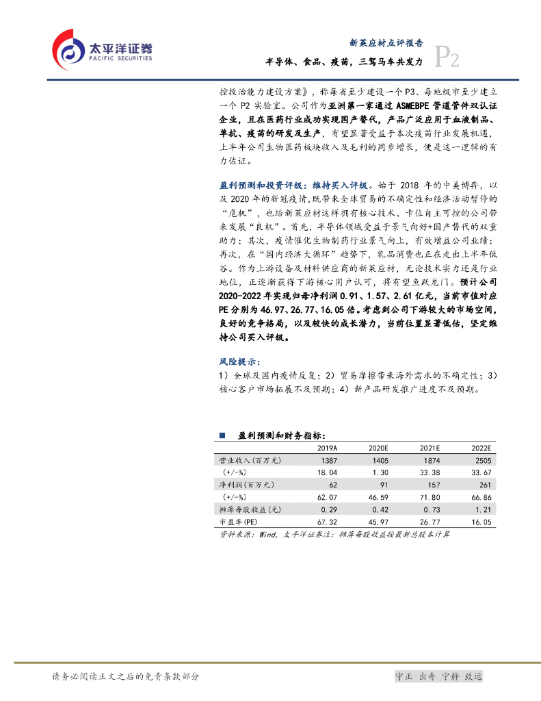 太平洋证券:新莱应材(300260)-半导体、食品、疫苗,三驾马车共发力.pdf