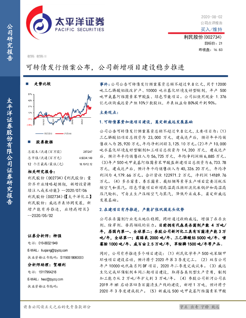 太平洋证券:利民股份(002734)-可转债发行预案公布,公司新增项目建设稳步推进.pdf