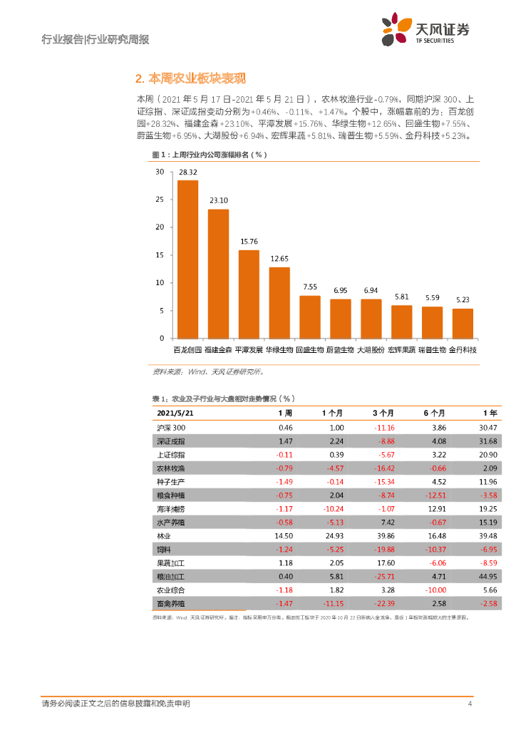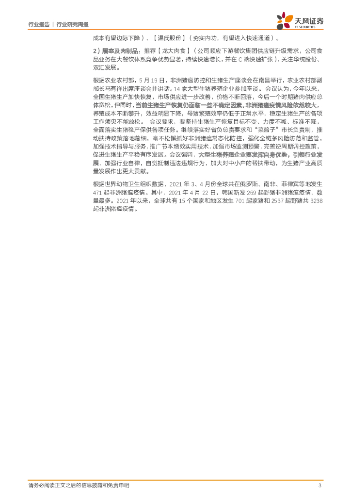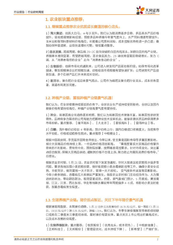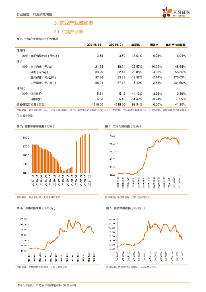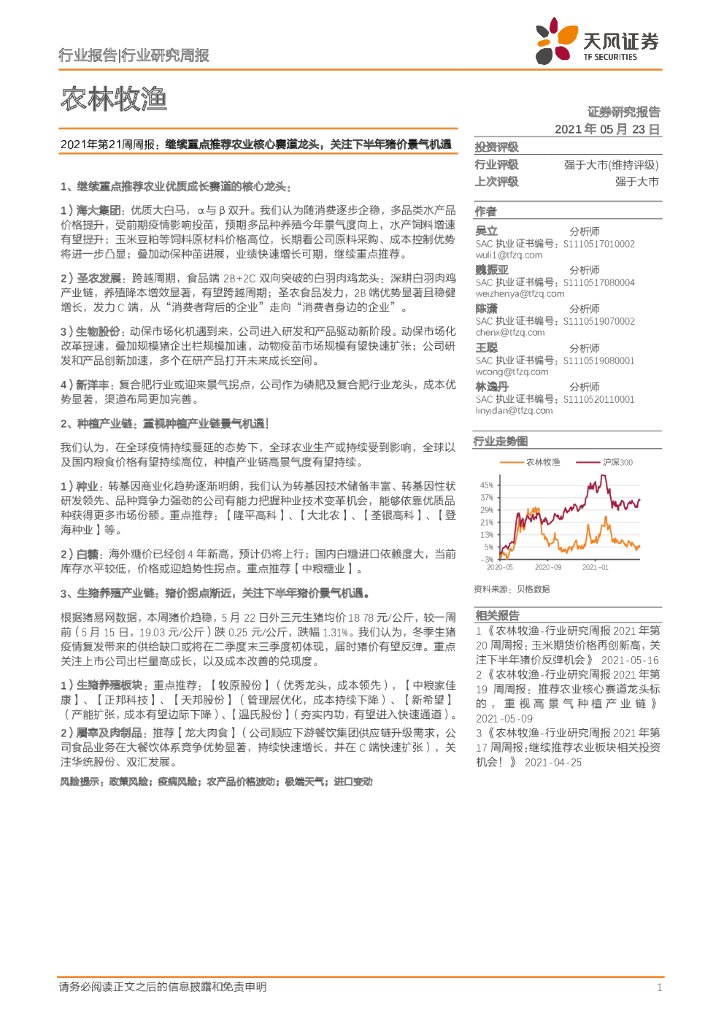 天风证券:农林牧渔2021年第21周周报:继续重点推荐农业核心赛道龙头,关注下半年猪价景气机遇.pdf