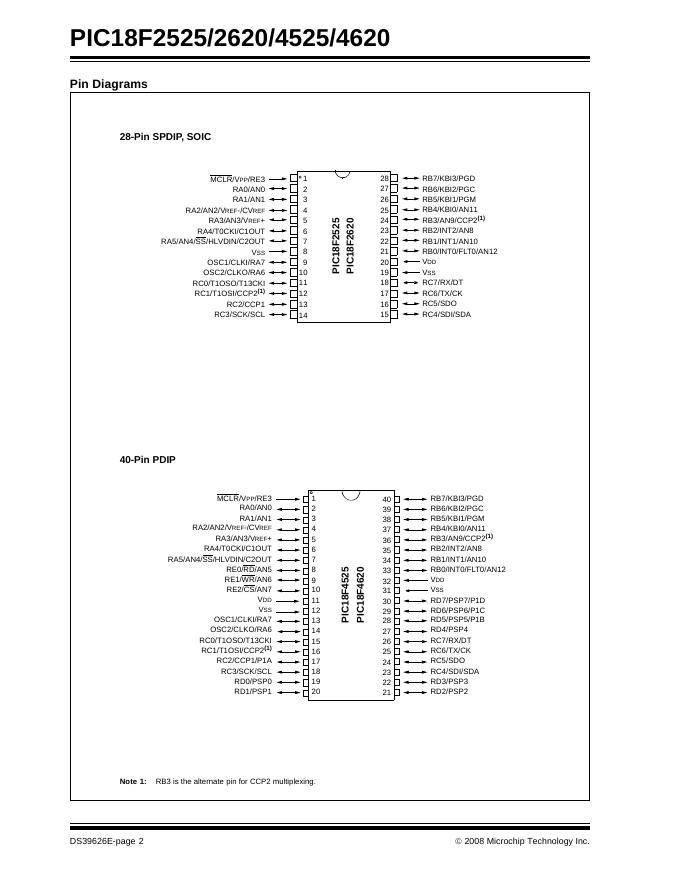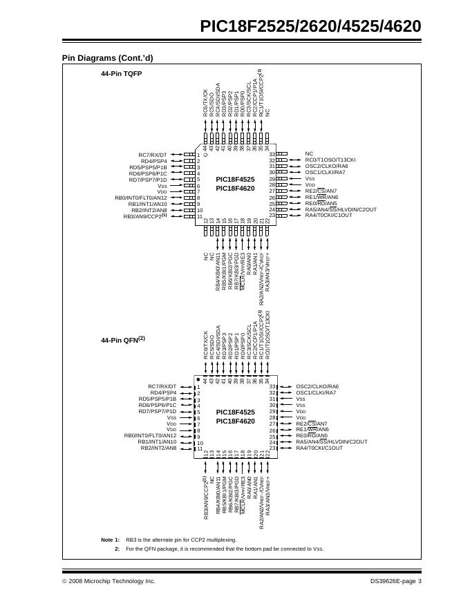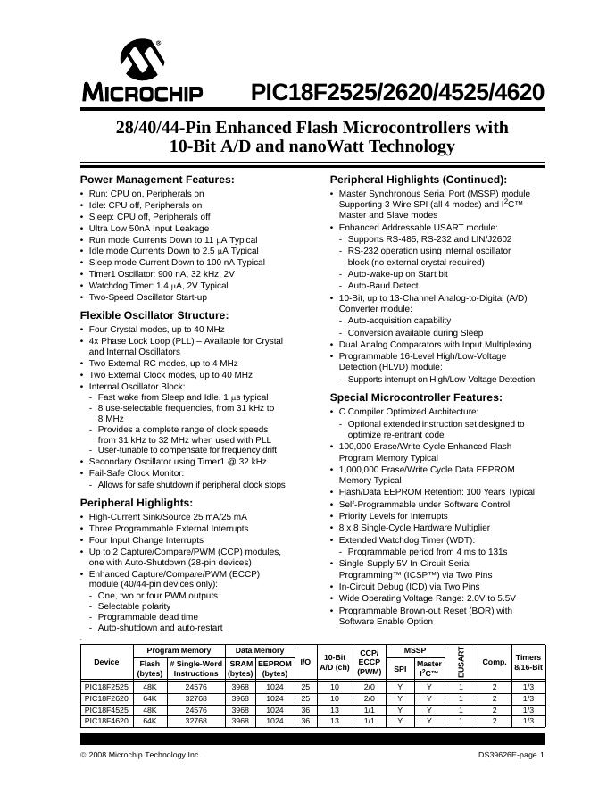 MICROCHIP PIC18F2525/2620/4525/4620 28/40/44-Pin Enhanced Flash Microcontrollers with 10-Bit A/D and nanoWatt Technology 数据手册.pdf