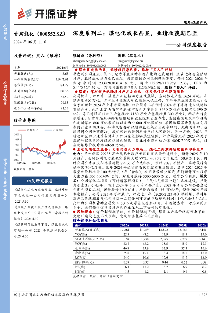 开源证券:甘肃能化(000552)-公司深度报告:深度系列二:煤电化成长凸显,业绩收获期已至.pdf