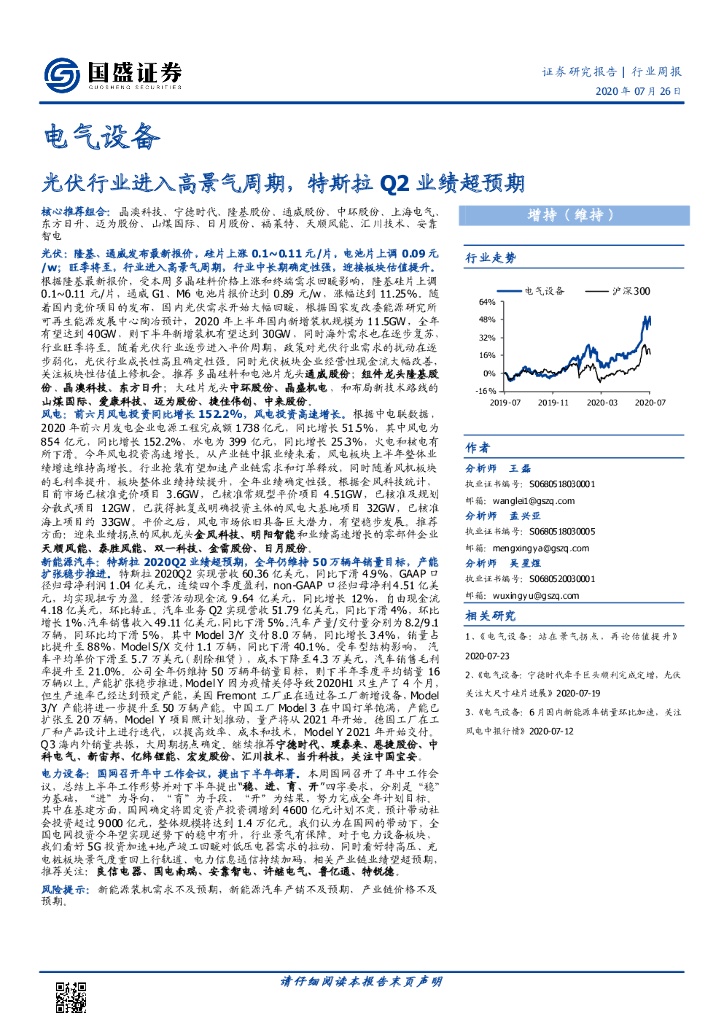 国盛证券:电气设备行业周报:光伏行业进入高景气周期,特斯拉Q2业绩超预期.pdf