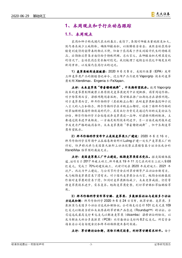 光大证券:基础化工行业周报:三种麦草畏产品在美撤销登记,拜耳宣布草甘膦诉讼和解.pdf