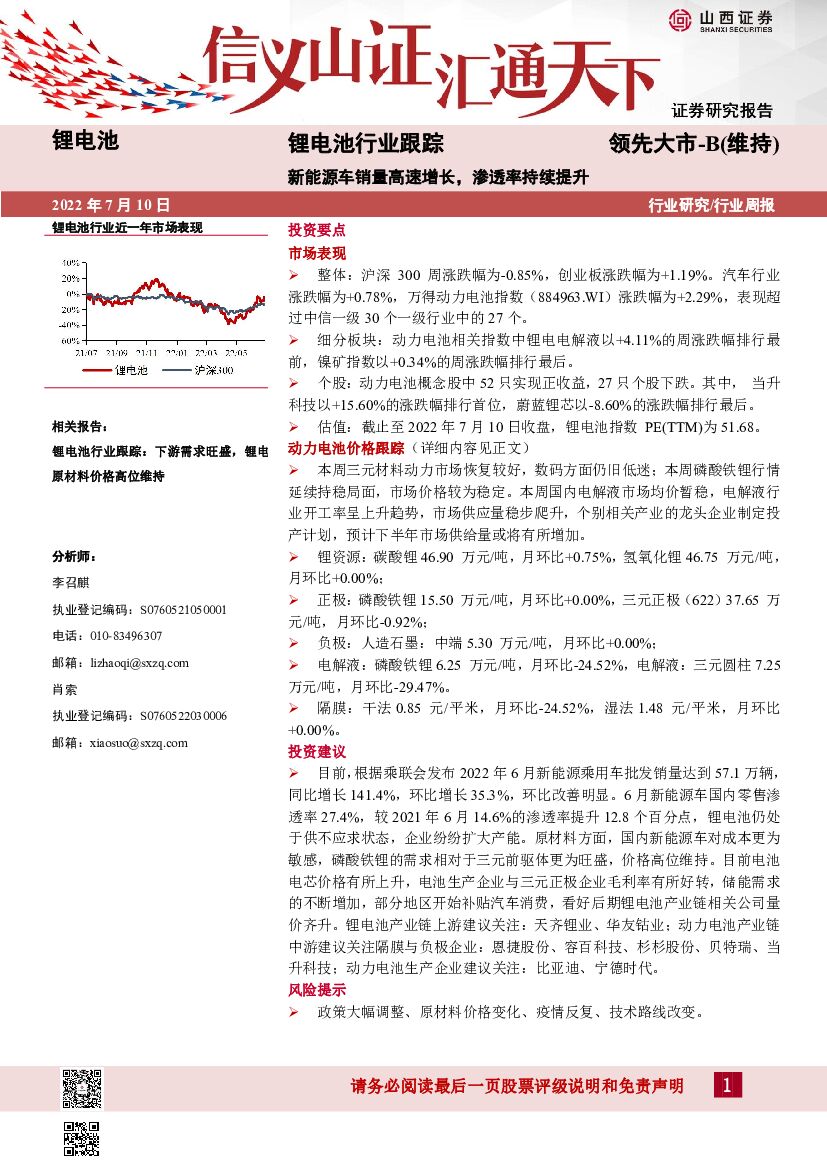 山西证券:锂电池行业跟踪:新能源车销量高速增长,渗透率持续提升.pdf