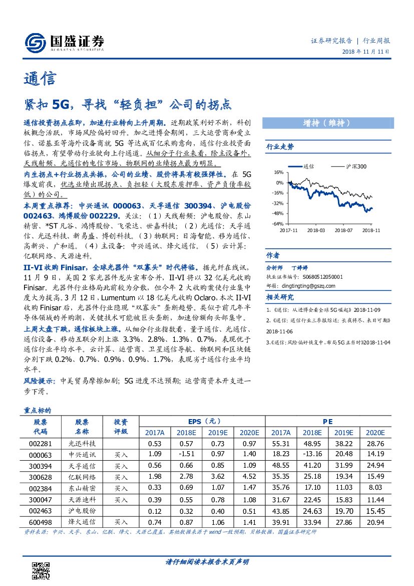 国盛证券:通信行业周报:紧扣5G,寻找“轻负担”公司的拐点.pdf