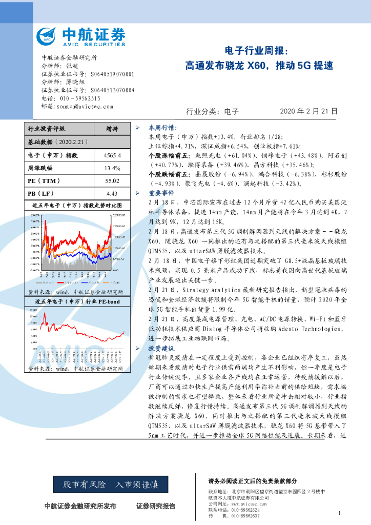 中航证券:电子行业周报:高通发布骁龙X60,推动5G提速.pdf