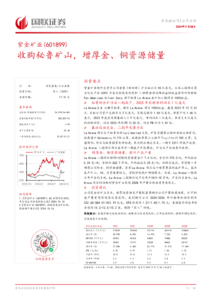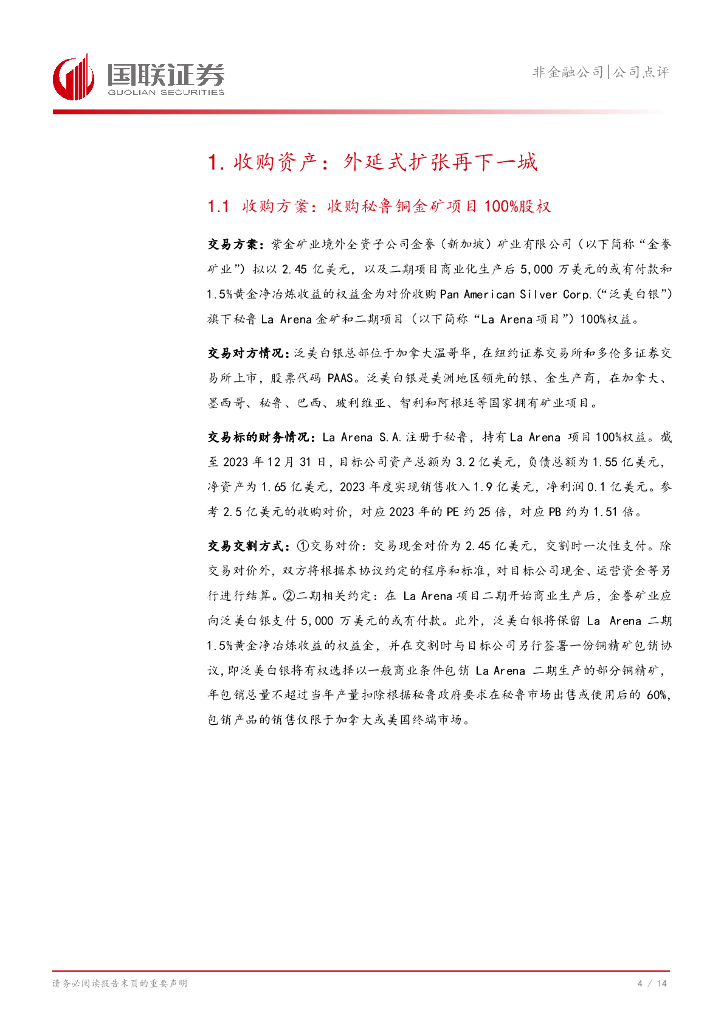 国联证券:紫金矿业(601899)-收购秘鲁矿山,增厚金、铜资源储量.pdf