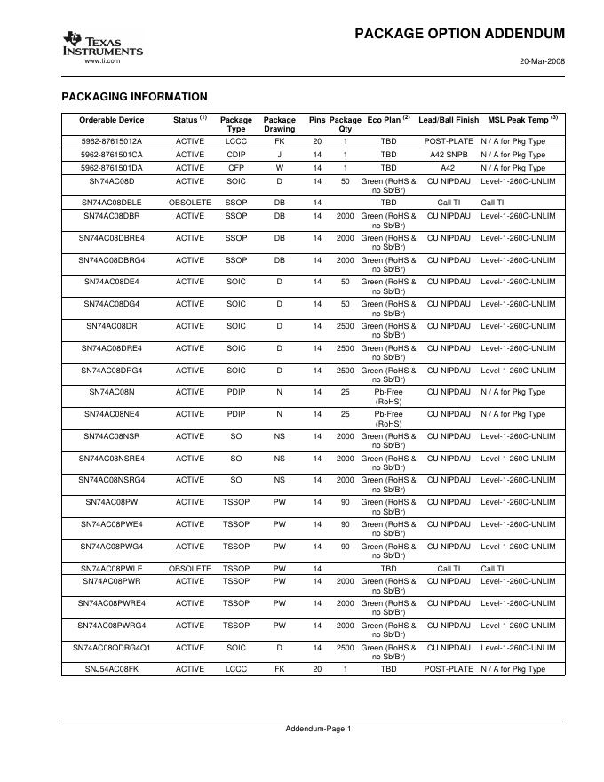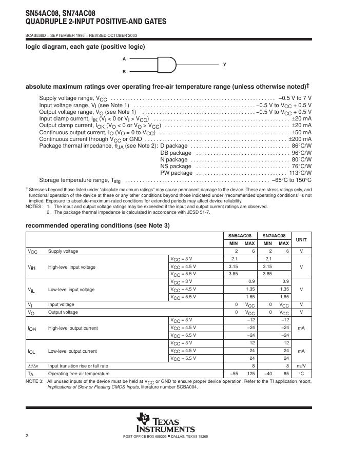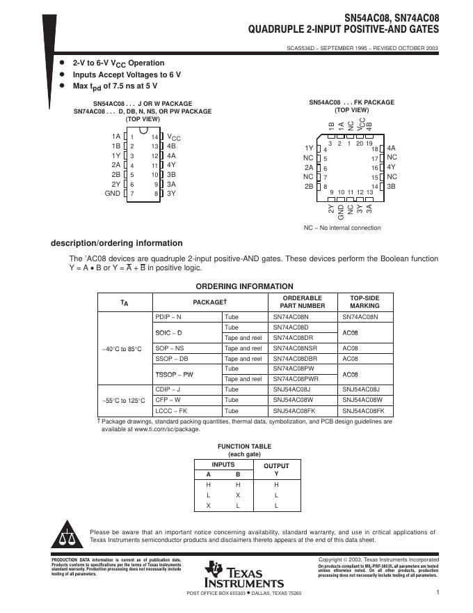 TEXAS INSTRUMENTS SN54AC08 SN74AC08 数据手册.pdf