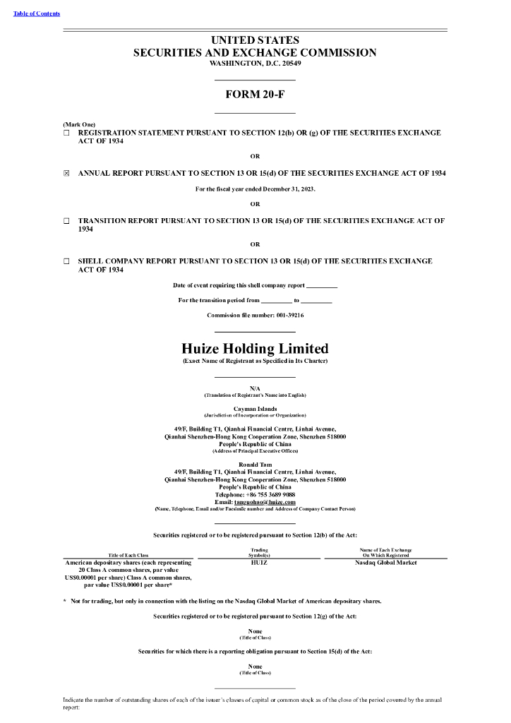 Huize Holding Limited(HUIZ)2023财年年度报告(英文版).pdf
