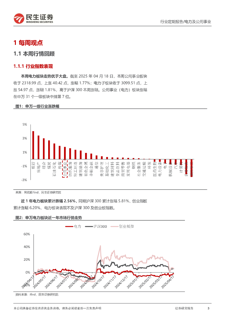 民生证券:电力及公用事业行业周报(25WK16):25Q1绿证核发量激增,3月用电量同比+4.8%.pdf