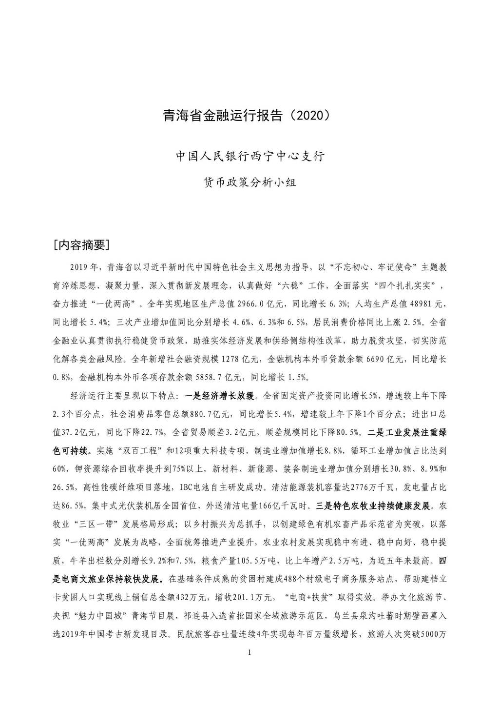 中国人民银行:2020青海省金融运行报告.pdf