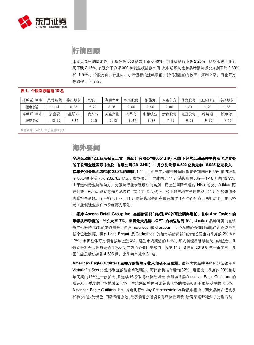 东方证券:纺织服装行业周报:11月社零数据疲弱,短期股份回购与增持仍是行业配置重点.pdf