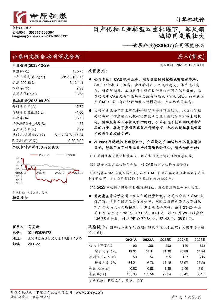 中原证券:索辰科技(688507)-公司深度分析:国产化和工业转型双重机遇下,军民领域协同发展壮大.pdf