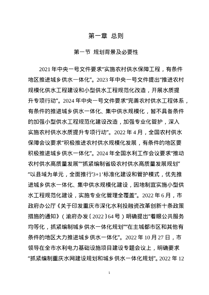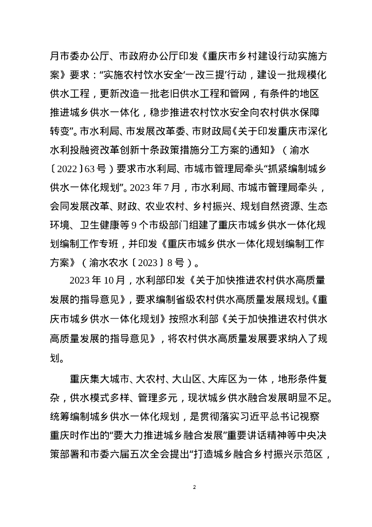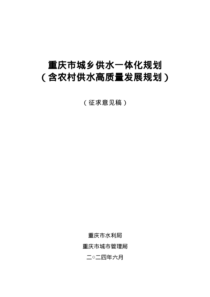 重庆市城乡供水一体化规划(含农村供水高质量发展规划)征求意见稿.doc