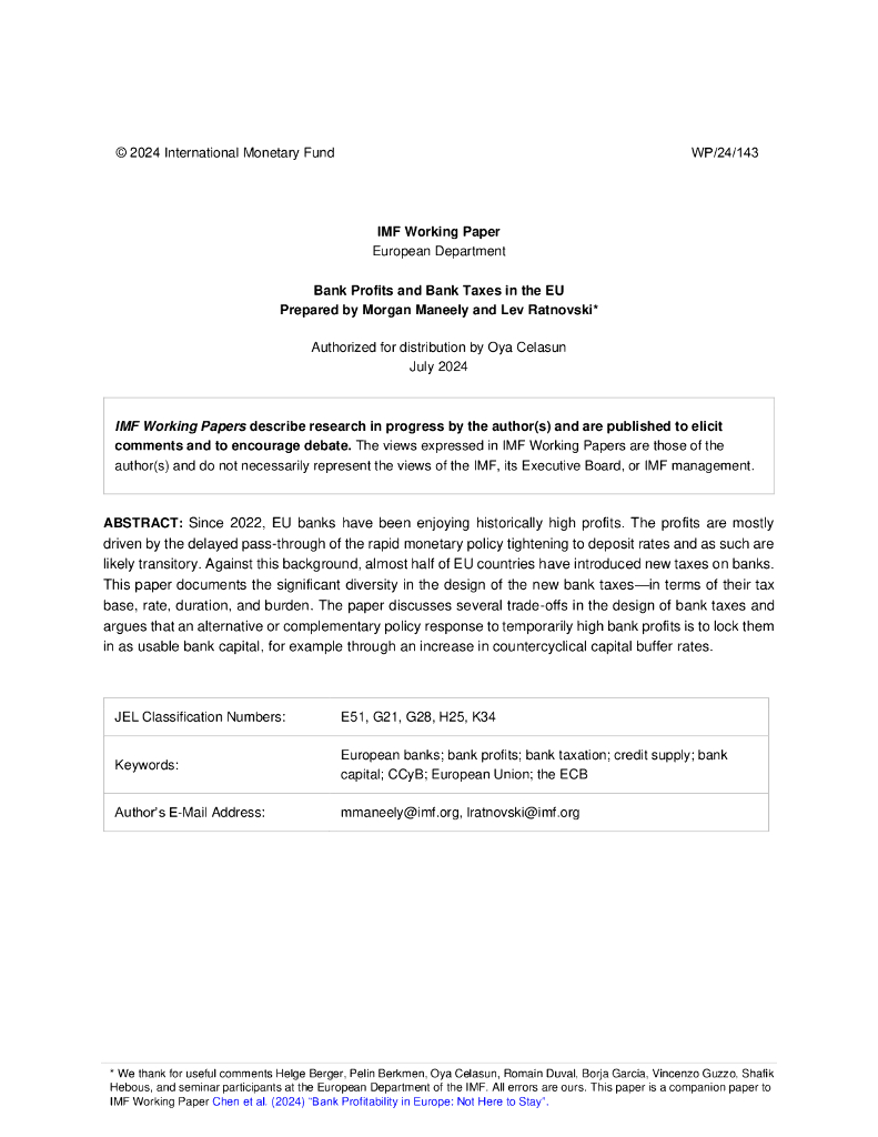国际货币基金组织:欧盟的银行利润和银行税(英文版).pdf