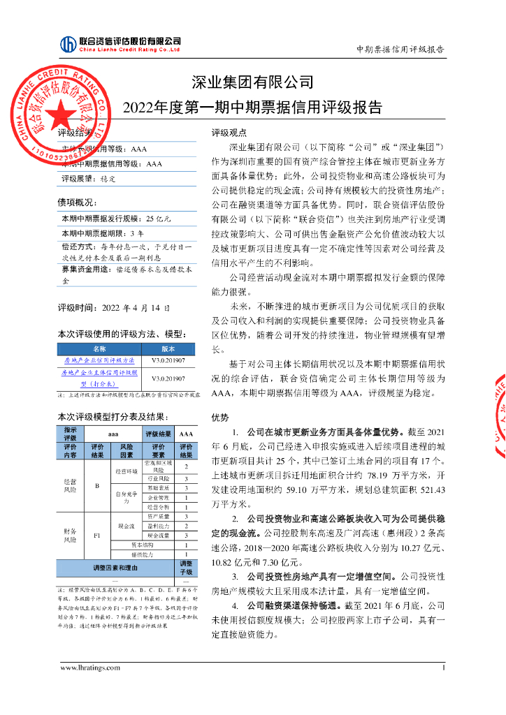 联合资信:深业集团有限公司2022年度第一期中期票据信用评级报告.pdf