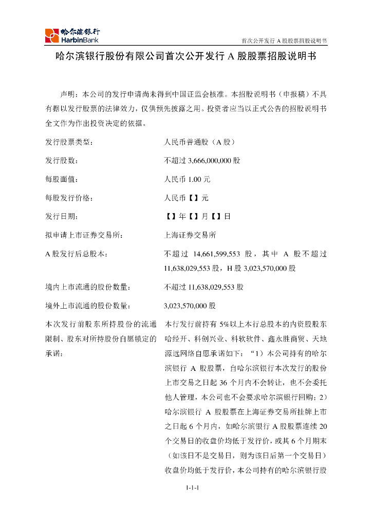 哈尔滨银行股份有限公司上交所主板IPO上市招股说明书.pdf