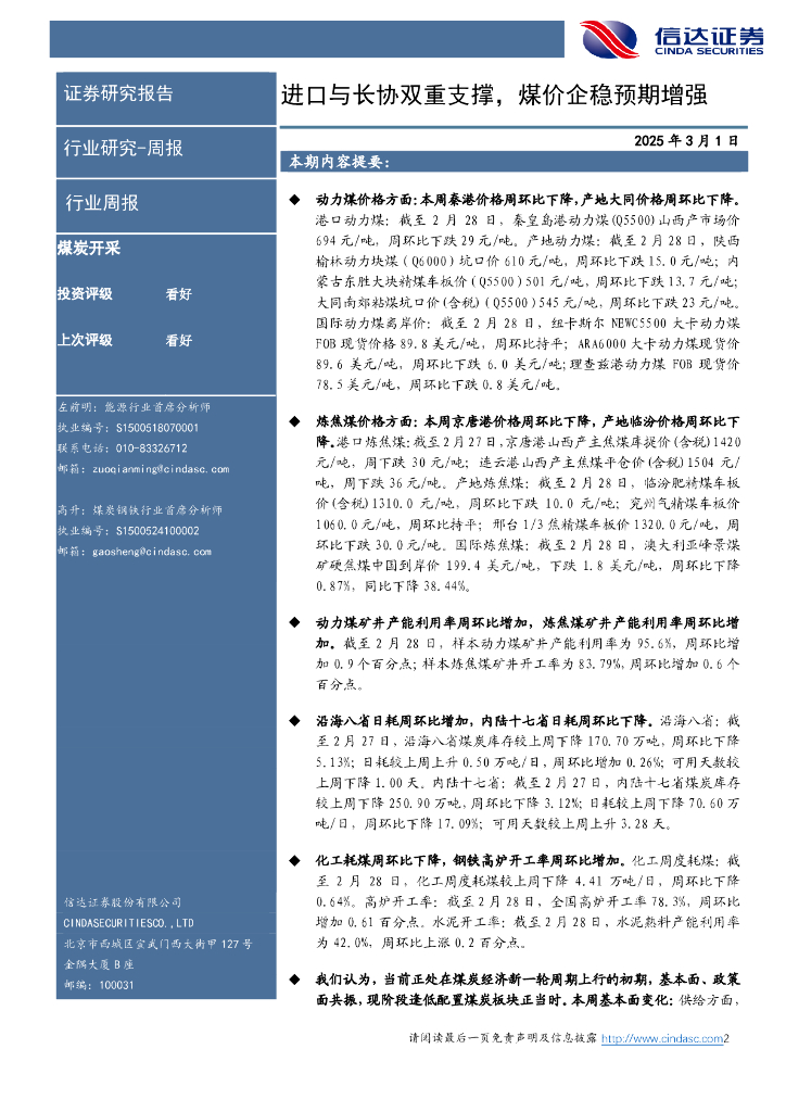 信达证券:煤炭开采行业周报:进口与长协双重支撑,煤价企稳预期增强.pdf