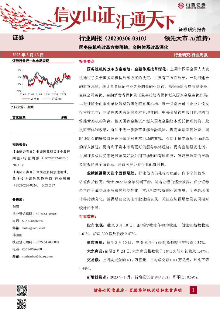 山西证券:证券行业周报:国务院机构改革方案落地,金融体系改革深化.pdf