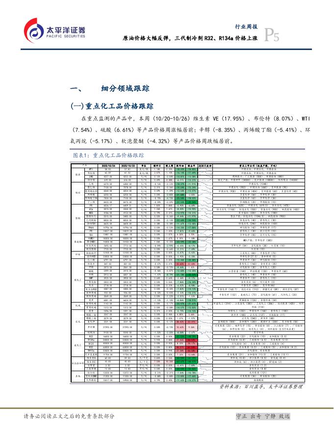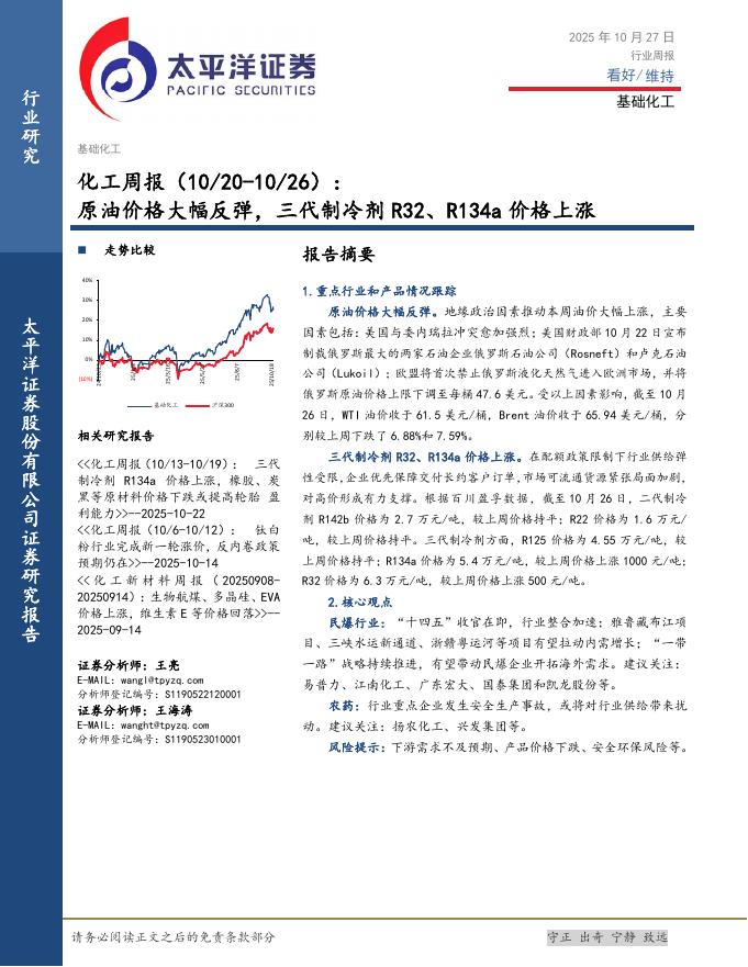 太平洋证券:化工行业周报:原油价格大幅反弹,三代制冷剂R32、R134a价格上涨.pdf