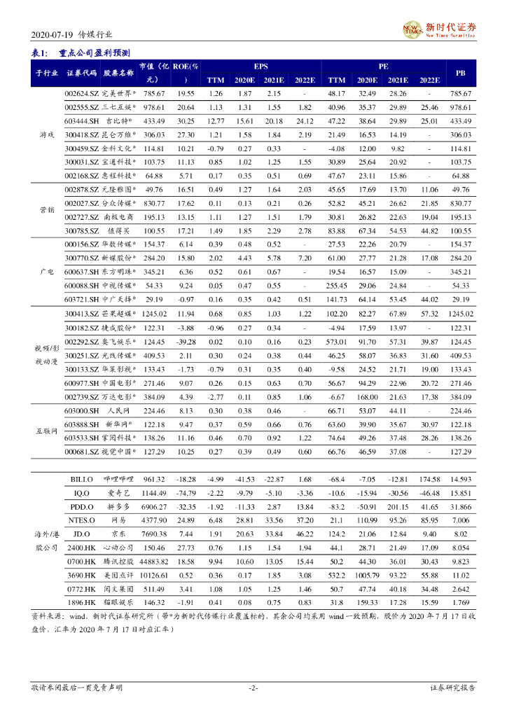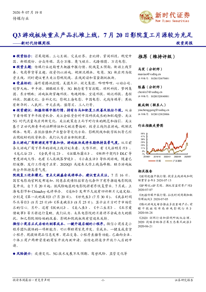 新时代证券:新时代传媒周报 :Q3游戏板块重点产品扎堆上线,7月20日影院复工片源较为充足.pdf
