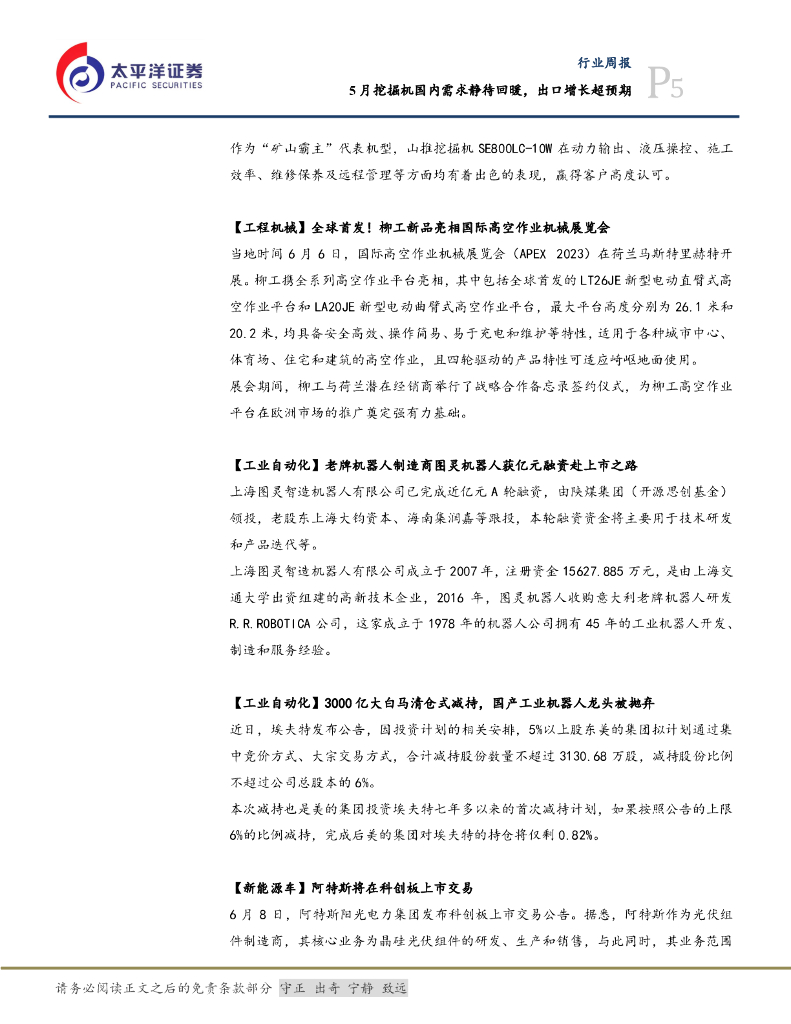 太平洋证券:机械设备:5月挖掘机国内需求静待回暖,出口增长超预期.pdf
