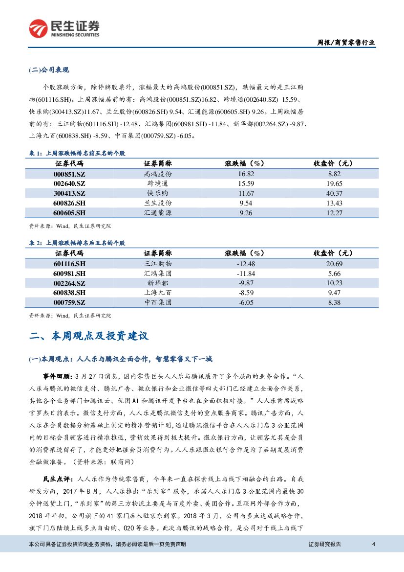 民生证券:商贸零售行业周报:人人乐与腾讯全面合作,智慧零售又下一城.pdf