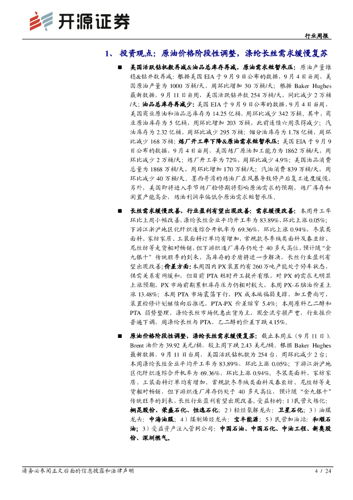 开源证券:石油化工行业周报:原油价格阶段性调整,涤纶长丝需求缓慢复苏.pdf