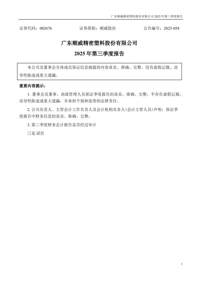 002676-顺威股份:2025年三季度报告.pdf