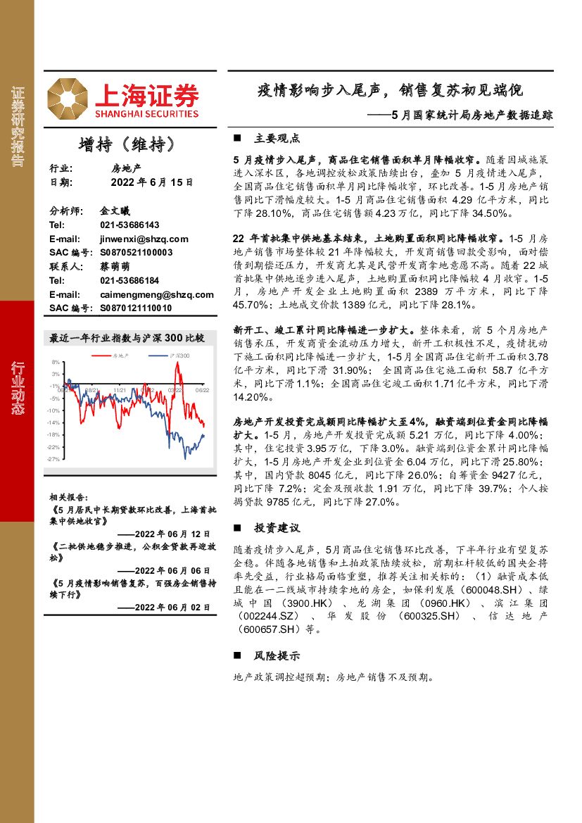 上海证券:房地产行业5月国家统计局房地产数据追踪:疫情影响步入尾声,销售复苏初见端倪.pdf