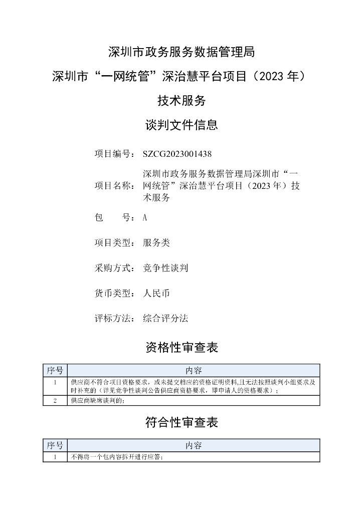 深圳市政务服务数据管理局深圳市“一网统管”深治慧平台项目招标文件.pdf