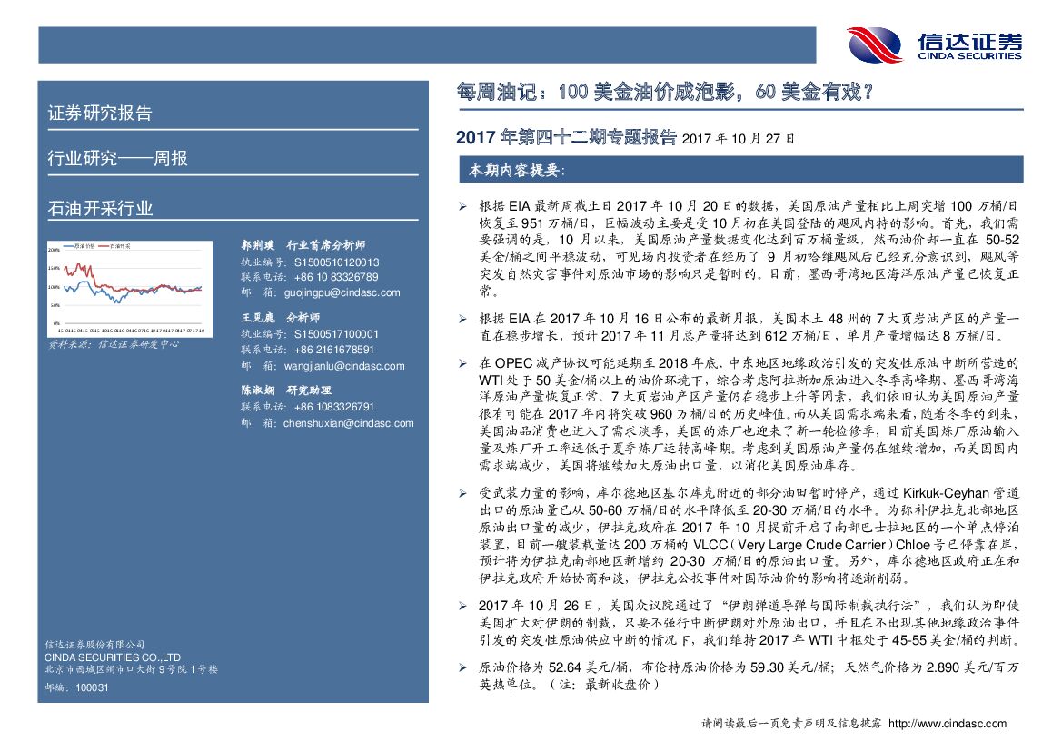 信达证券:每周油记:100美金油价成泡影,60美金有戏?.pdf