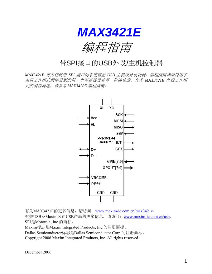MAX3421E 带SPI接口的USB外设/主机控制器 编程指南.pdf