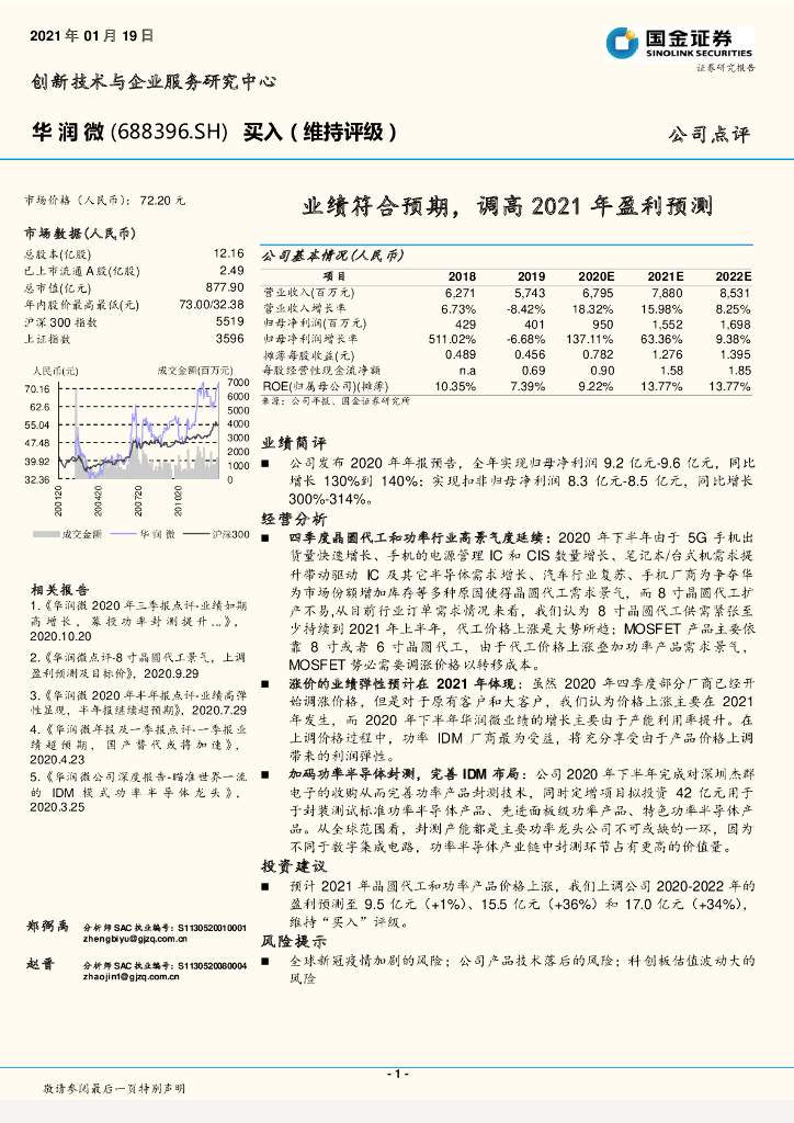 国金证券:华润微(688396)-业绩符合预期,调高2021年盈利预测.pdf