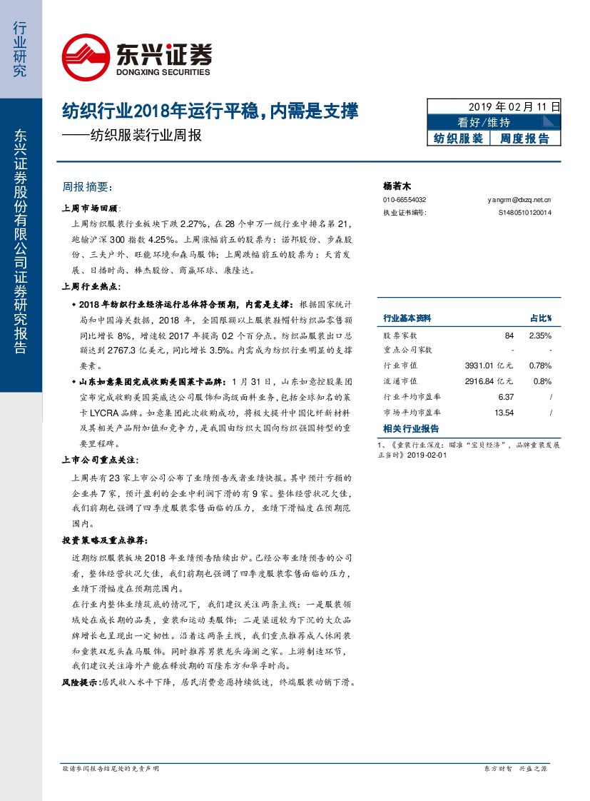 东兴证券:纺织服装行业周报:纺织行业2018年运行平稳,内需是支撑.pdf