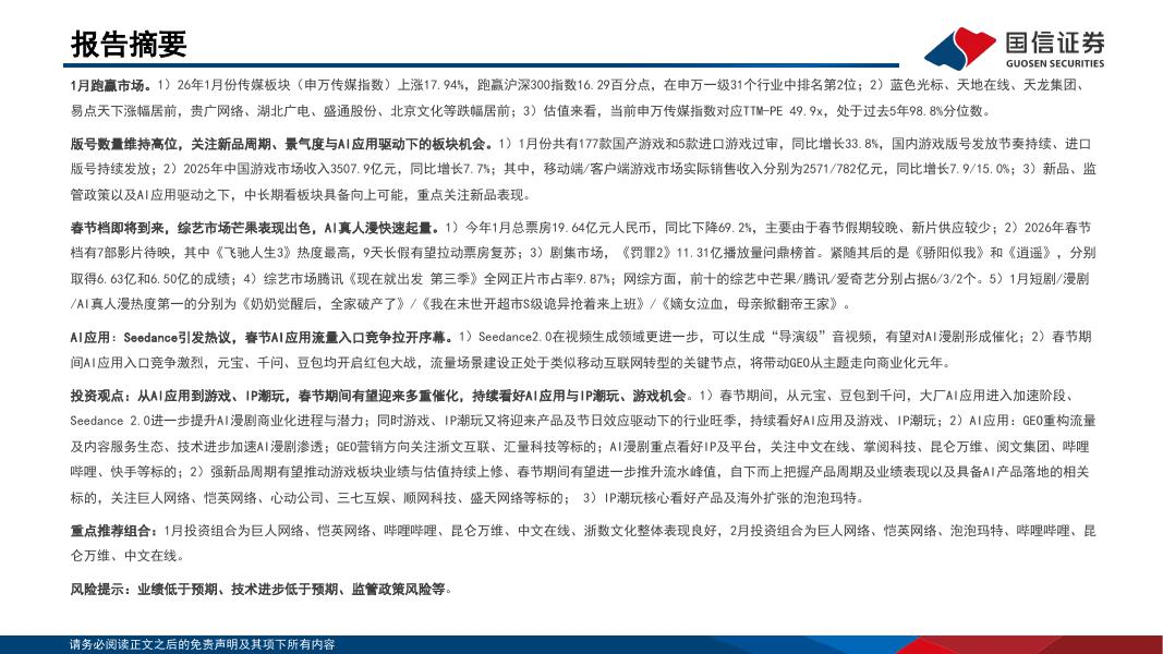 国信证券:传媒行业2月投资策略:大模型能力与大厂AI应用加速,持续看好AI应用与IP潮玩机会.pdf